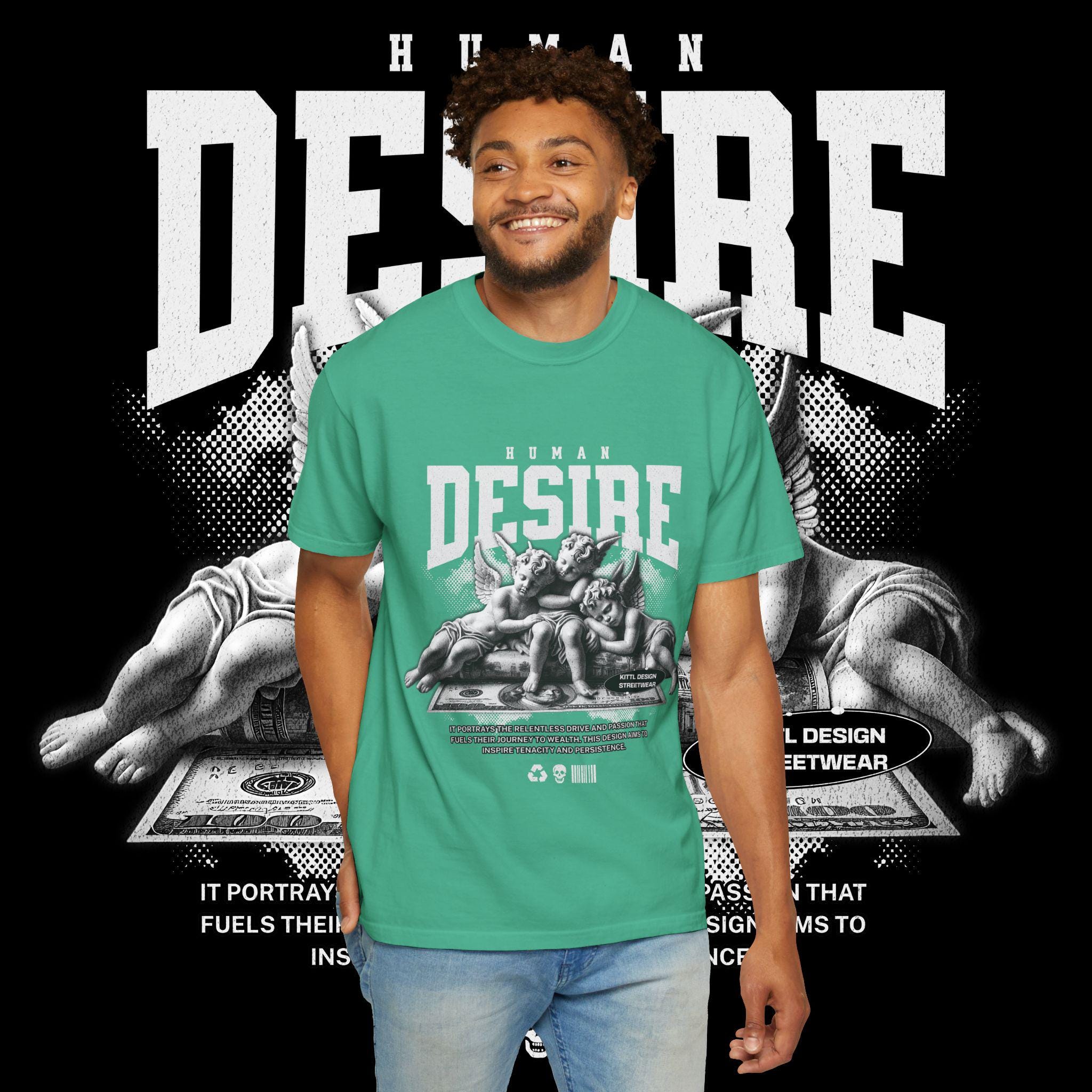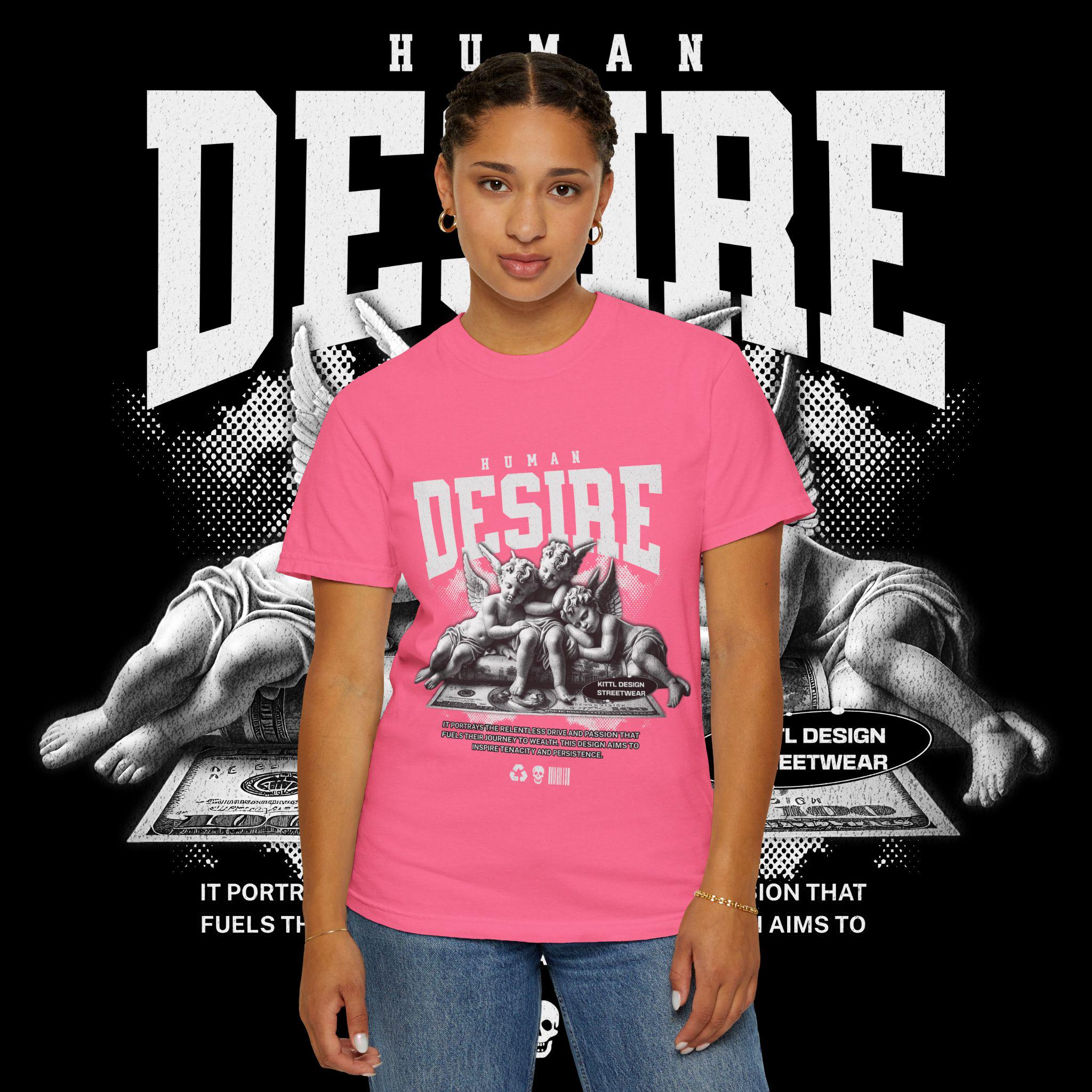This T-shirt exudes a feeling of human desire, making it a versatile piece that can be styled in various ways. Perfect for those who appreciate unique and meaningful designs, this garment-dyed tee is ideal for casual wear or layering under a blazer for a semi-formal look. Great for adults looking for a comfortable and stylish addition to their wardrobe, especially suitable for holidays and special occasions.