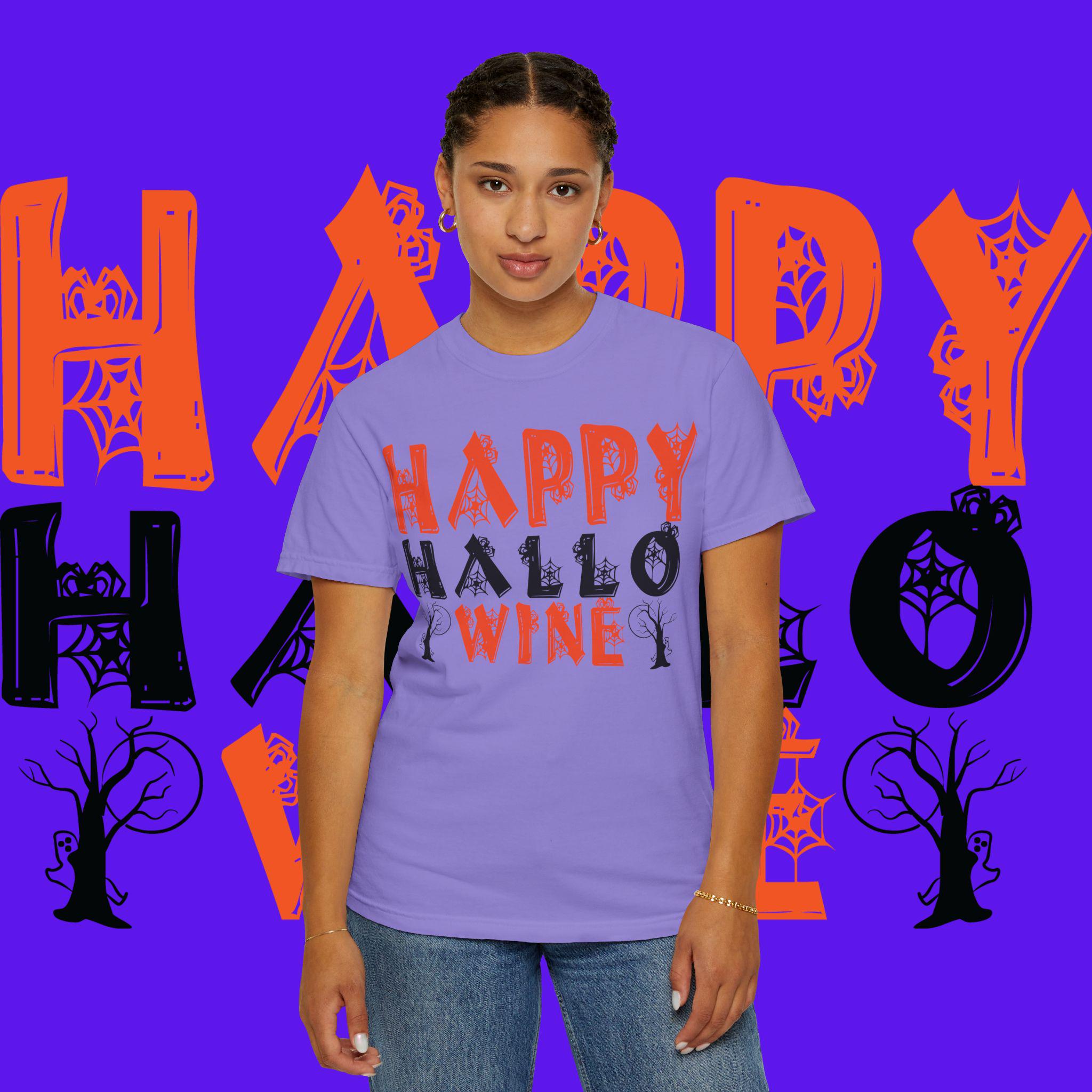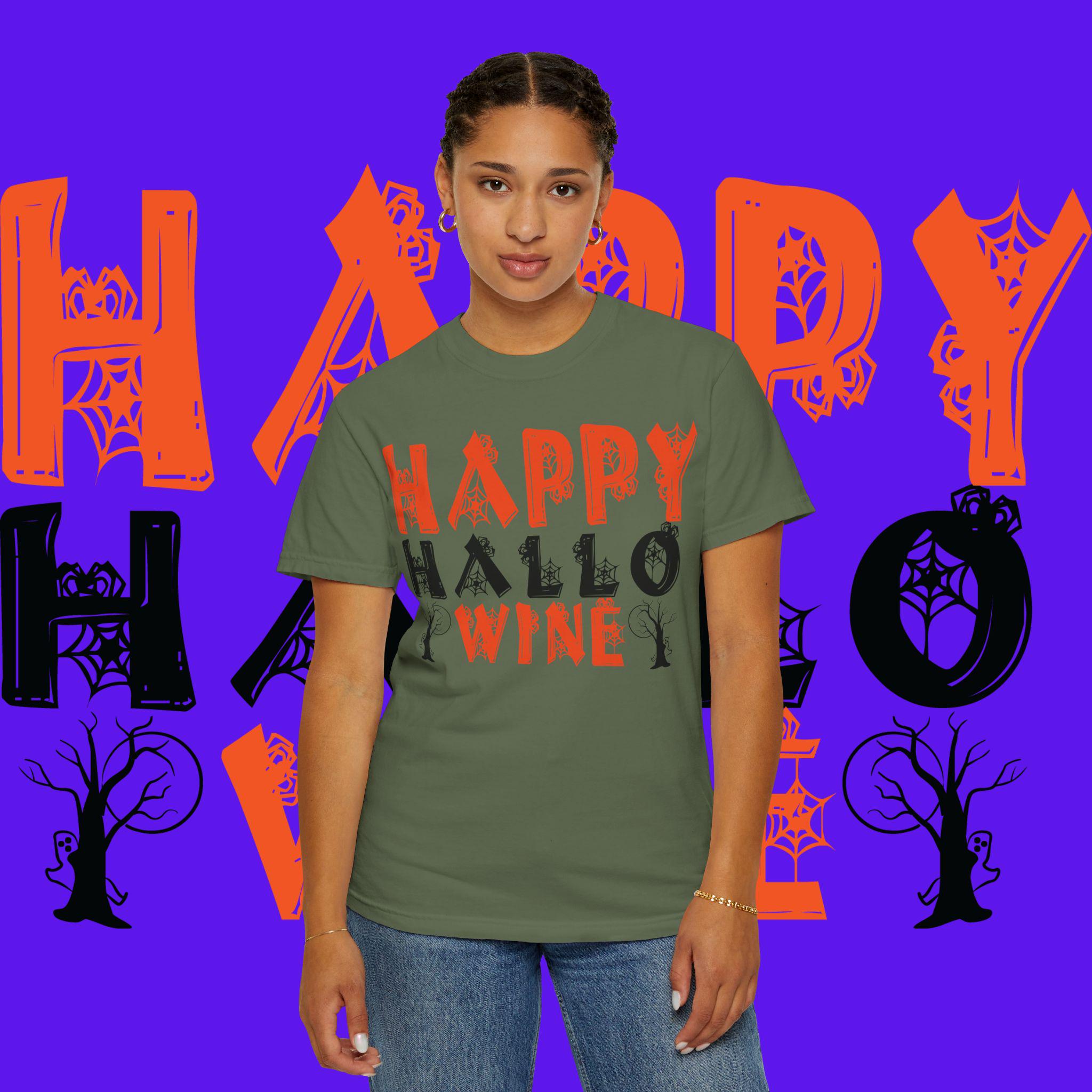 This Hallowine T-shirt is the perfect spooky celebration apparel for fall festivities. It's a fun Halloween gift that gives off a festive and playful vibe, making it perfect for Halloween parties and events. The unisex design makes it suitable for anyone looking to add a touch of Halloween spirit to their wardrobe.